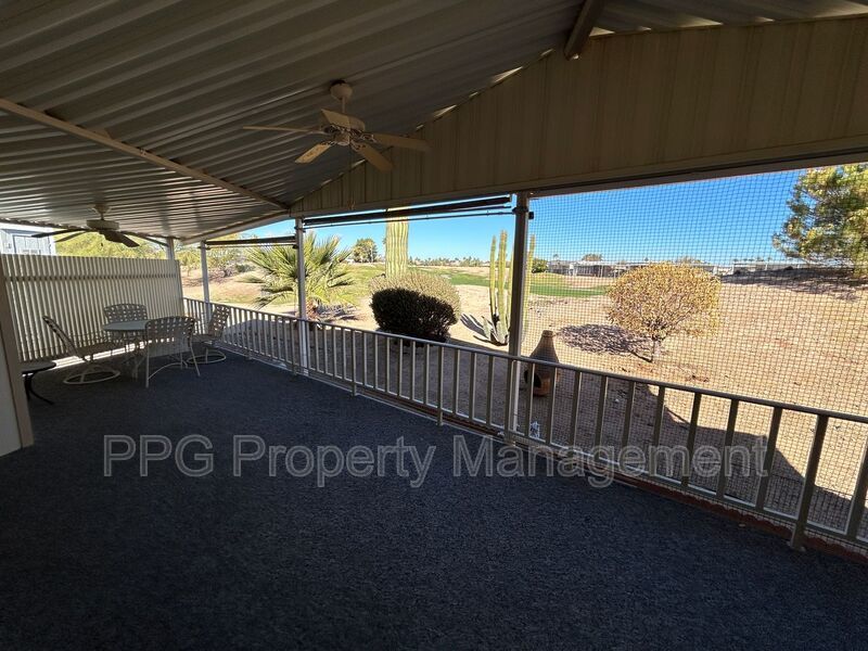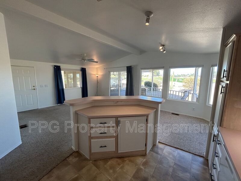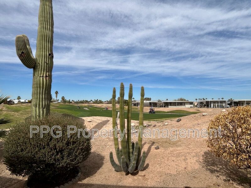The primary suite is a true retreat, featuring a spacious walk-in closet and a luxurious walk-in shower. Throughout the home, upgraded carpet adds a touch of elegance and warmth. Step outside to enjoy the extended covered patio, perfectly positioned with a desirable north-facing orientation, ideal for relaxing and entertaining while overlooking the lush greens. Includes an attached workshop/storage shed.