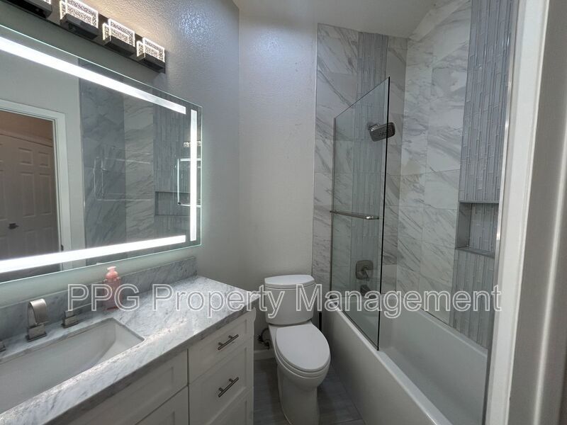 This completely remodeled home features 3 bedrooms, 2 bathrooms, gourmet kitchen, custom tile and counters and a 2 car garage. Luxury features include a custom walk-in closet and whirlpool tub in the master suite, updated sinks and fixtures, custom lighting, ceiling fans and plantation shutters.