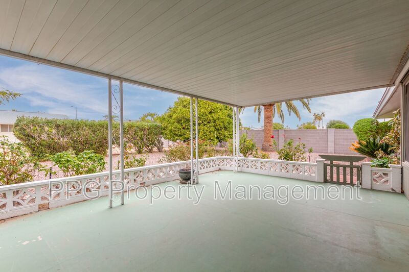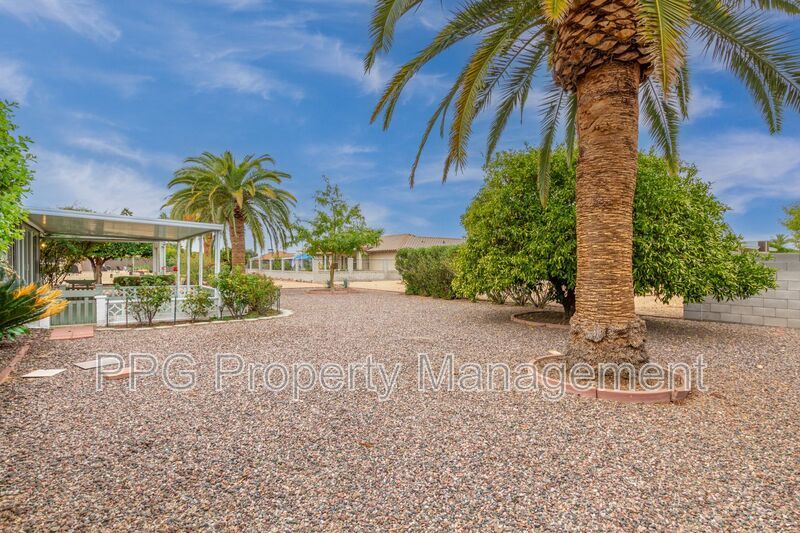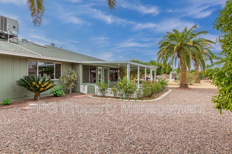 Welcome to this beautiful 3 bedroom, 2 bathroom home in the desirable age restricted (55+) community of Sun City. This move-in ready house features hardwood flooring throughout the main living areas, with tile floors in the kitchen and bathrooms. The remodeled kitchen boasts granite slab countertops and maple cabinets, along with upgraded appliances. The bedrooms have upgraded carpet for added comfort. Enjoy the Arizona weather on the extended covered patio overlooking lush landscaping. Don't miss out on this fantastic opportunity to make this house your home!