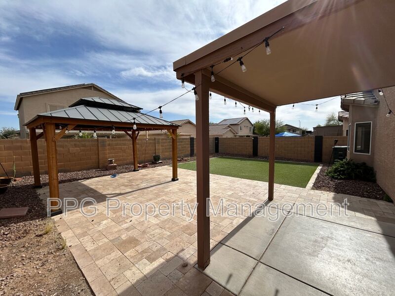 Step outside to enjoy Arizona living at its finest. A spacious covered patio provides the perfect spot for outdoor dining or relaxing in the shade. The backyard is a low-maintenance oasis, complete with lush artificial turf, beautiful travertine accents, and a charming ramada for extra entertaining space.