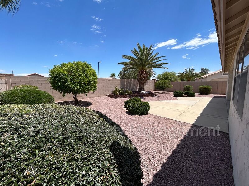 Welcome to this charming 2 bedroom, 2.5 bathroom home in the active adult (age 55+), guard gated, golf course community of The Traditions. This lovely home features new quartz countertops in the kitchen, ceiling fans in all rooms, maple cabinets, plantation shutters and 2" wood blinds. With two bedrooms plus a den, there is plenty of space for your needs. The built-in cabinets in the laundry room and garage provide ample storage options. Enjoy the Arizona weather on the extended covered patio. 18 hole championship golf course, pickle ball courts, tennis courts, recreation center and club house are within walking distance. Don't miss out on this wonderful opportunity to make this house your home!