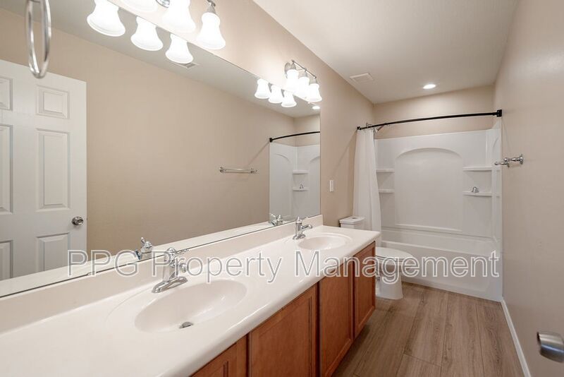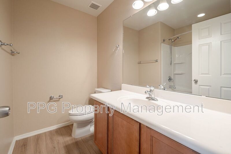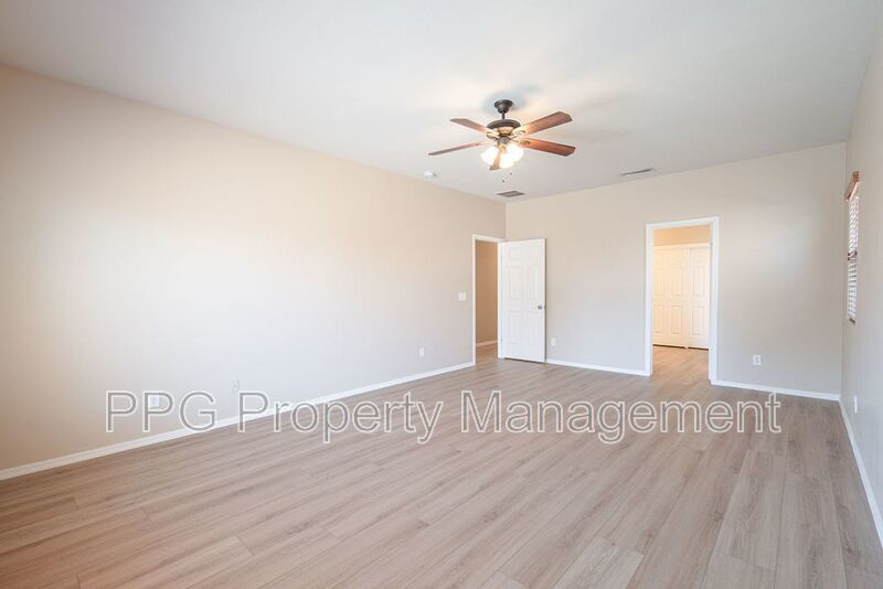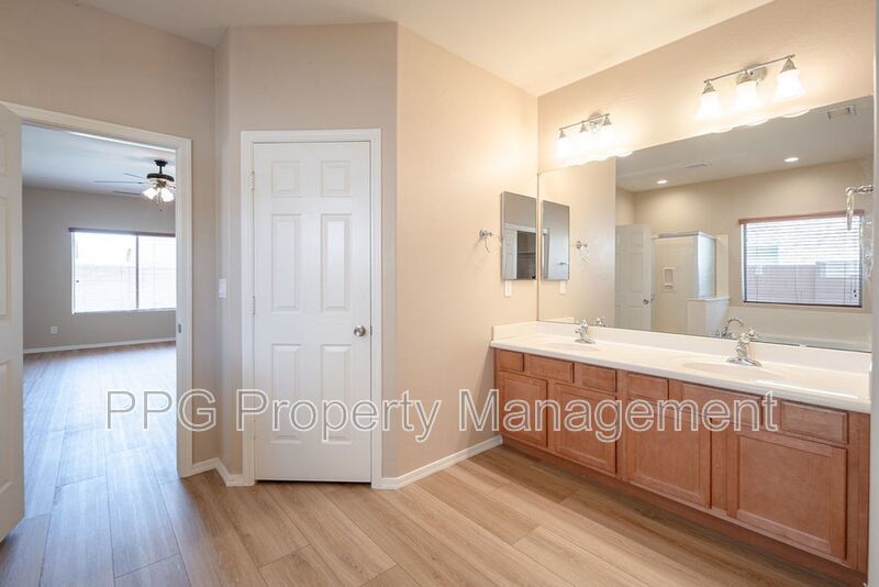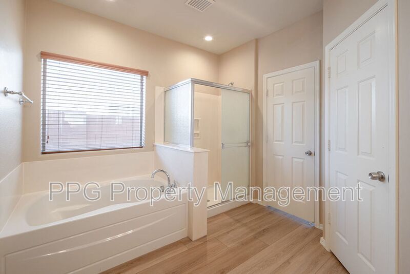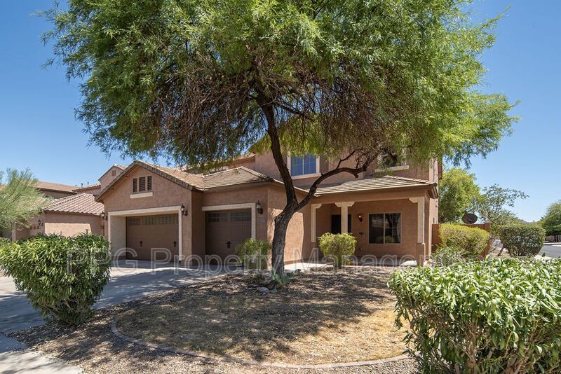 Spacious 5 bedroom 3.5 bath home with a pool in Festival Foothills is available for immediate move-in. Weekly pool service is included in the rent. Home features new laminate wood floors, upgraded tile and carpet, fresh paint throughout. It also has a huge loft, kitchen island, cabinets and a sink in the laundry room, stainless steel appliances, separate tub and shower in the master bath and double sinks in the master and one of the guest baths. The master is downstairs. Home also has a finished backyard, covered patio and a 3 car garage. Property is on a corner lot and near schools, highway access, and a huge park.