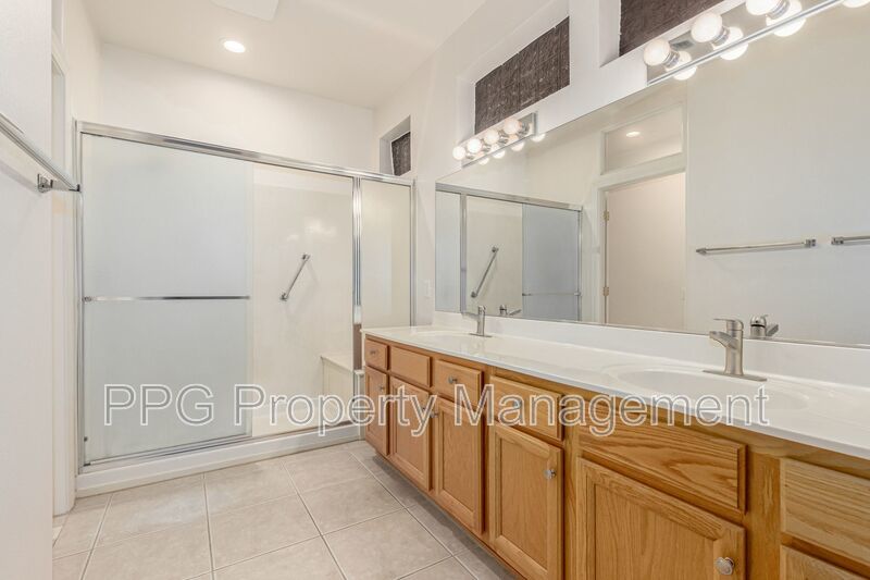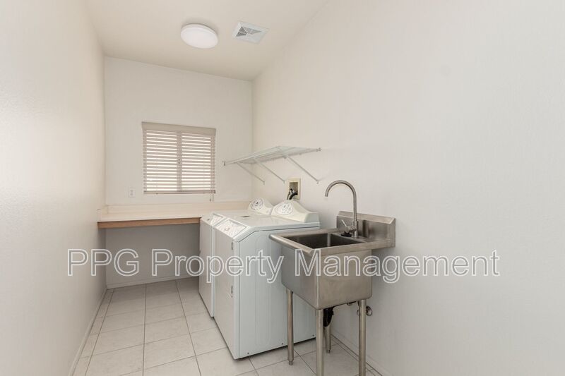 The primary suite is a private retreat, featuring a generous walk-in closet and a walk-in shower for ease and convenience. A large laundry and storage room adds practical space for daily needs. Outside, you’ll enjoy a tranquil, extended covered patio overlooking a lush backyard bordered by mature oleander bushes, offering a natural privacy screen from neighbors.
