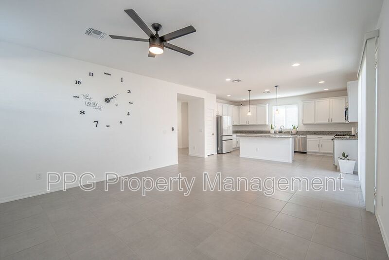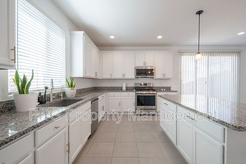Welcome to your dream rental home, where comfort and modern convenience come together in a beautifully upgraded space. This home features stunning tile and carpet throughout, providing both style and durability. The spacious kitchen is a true centerpiece, boasting a large island, an abundance of cabinets for storage, elegant granite slab countertops, and a sleek farmhouse sink. Cooking is a breeze with upgraded stainless steel appliances, including a dishwasher and stove with built-in Wi-Fi capabilities. A whole-home water filtration and softener system adds an extra layer of comfort and efficiency.
