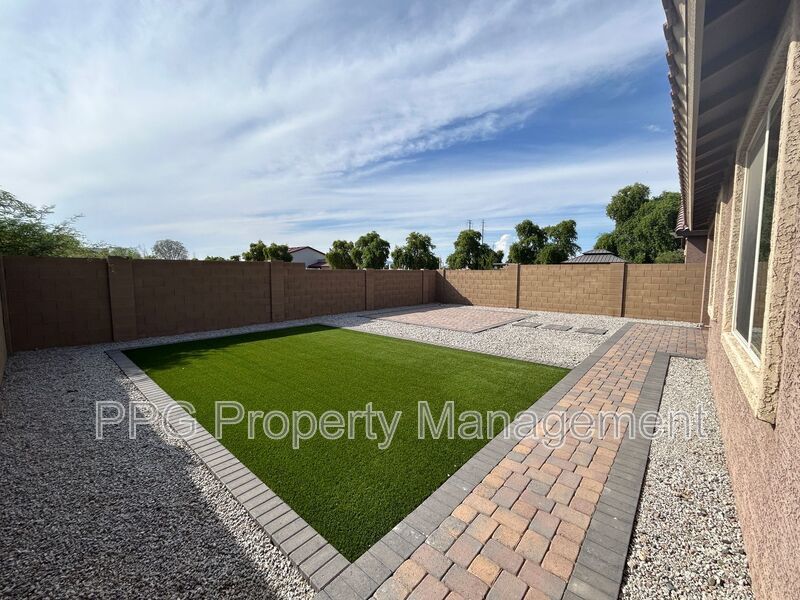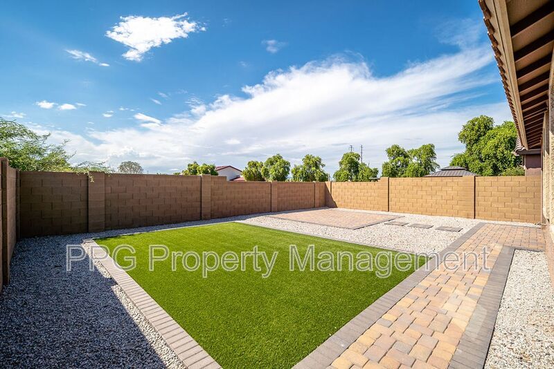 This stunning 4-bedroom, 2-bathroom home offers a perfect blend of style and comfort. Featuring upgraded tile and carpet flooring throughout, the spacious great room concept creates an inviting atmosphere ideal for both relaxing and entertaining. The large kitchen boasts upgraded cabinets, beautiful quartz countertops, and sleek stainless steel appliances, making it a chef’s dream. Every window is adorned with elegant 2-inch wood blinds, and upgraded ceiling fans and light fixtures add a touch of sophistication to each room. The bathrooms feature raised vanities, with the primary suite showcasing a luxurious walk-in shower and walk-in closet. Guests will enjoy the convenience of a Jack and Jill bathroom, providing both privacy and accessibility. Step outside to a backyard designed for low-maintenance enjoyment, complete with artificial turf, concrete pavers, and a covered patio perfect for outdoor gatherings. This home combines thoughtful upgrades with functional living, creating a space you’ll love to call your own.