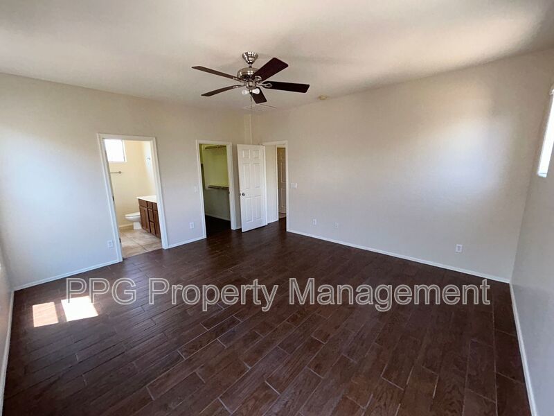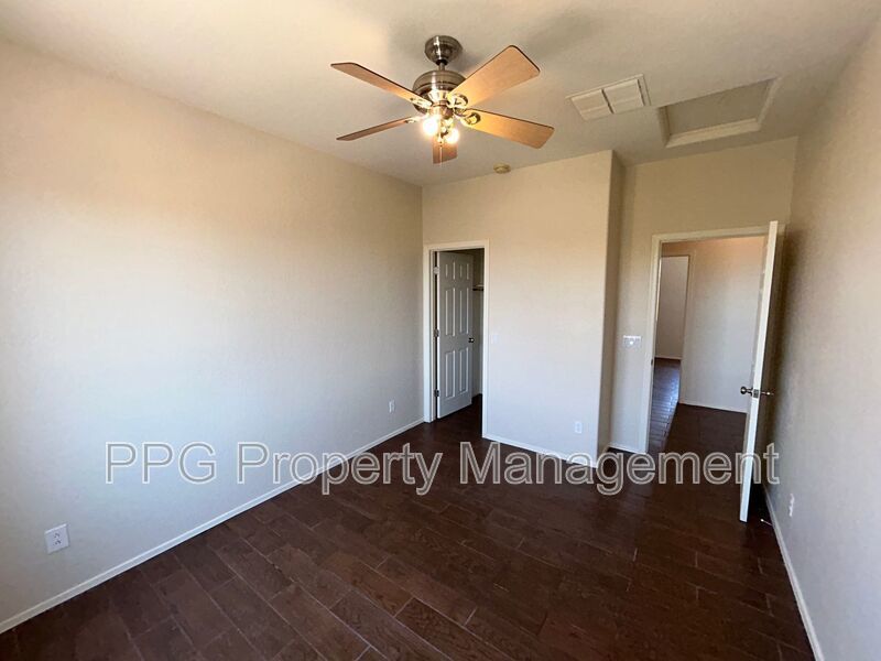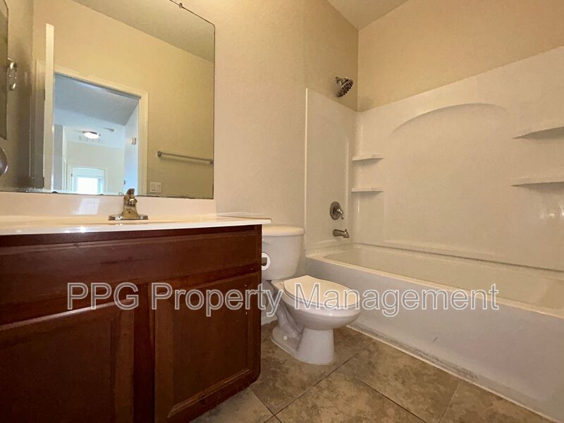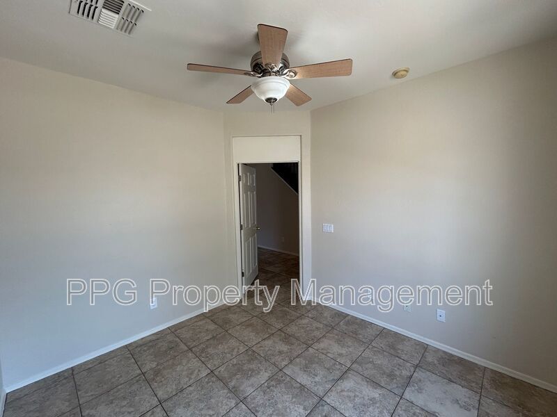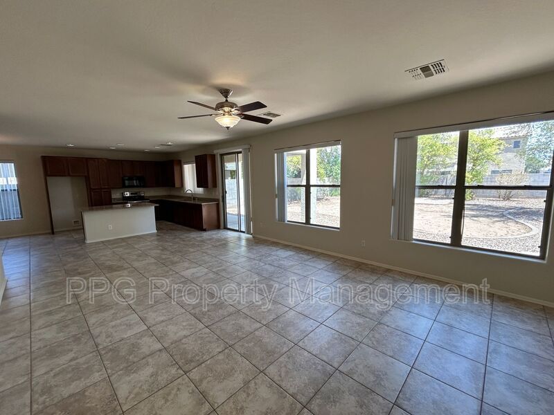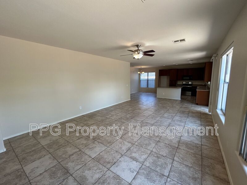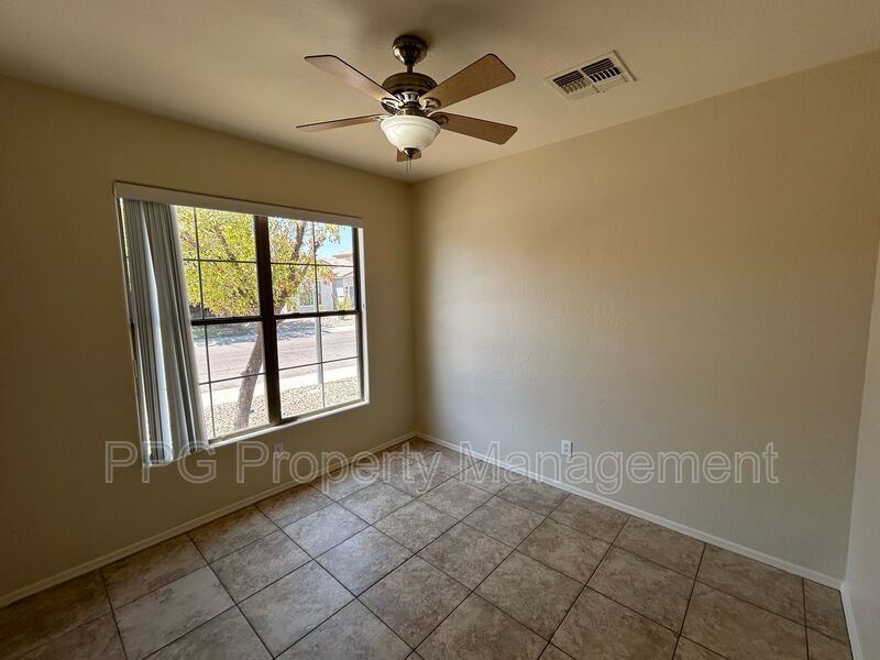 This beautiful home offers three spacious bedrooms and two and a half bathrooms, providing plenty of room for comfortable living. Inside, you’ll find a versatile loft along with a den or office, perfect for working from home or creating a private retreat. The great room concept creates an open and inviting layout, enhanced by tile floors throughout and fresh interior paint. The kitchen features granite slab countertops, upgraded cabinets, and a layout that flows seamlessly into the living areas. The primary suite includes a walk-in shower, a soaking tub, and a large walk-in closet, creating a relaxing and functional space. Ceiling fans are installed in every room, adding comfort and energy efficiency. Outdoors, you can enjoy a covered patio overlooking a large backyard, ideal for entertaining or unwinding in privacy.