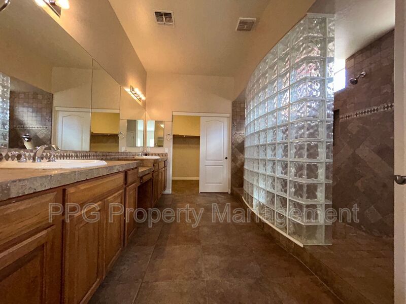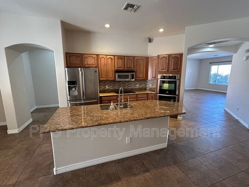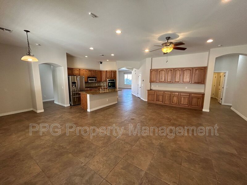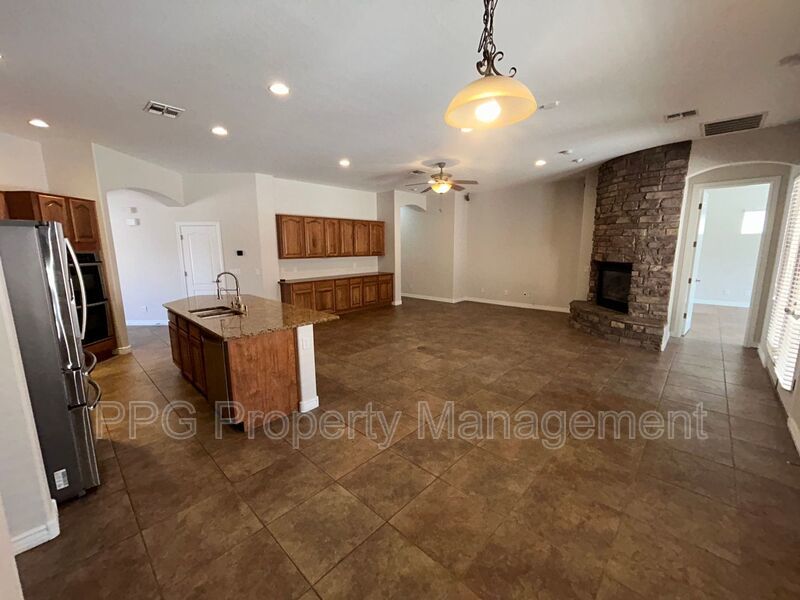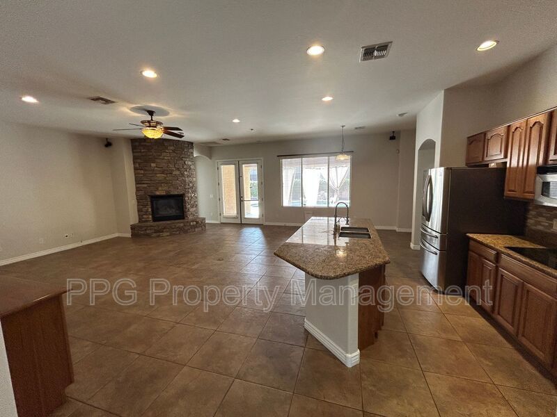 This stunning rental home in an incredible North Phoenix location will be ready for move-in by mid-September. Featuring a beautifully designed interior, the kitchen boasts custom cabinets, granite slab countertops, and a stylish tile backsplash, complemented by stainless steel appliances including dual ovens. The family room offers a cozy ambiance with a striking stone fireplace, perfect for relaxing or entertaining. The home has solar panels which means low electric bills.