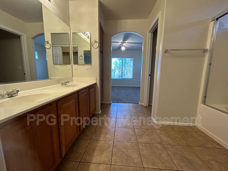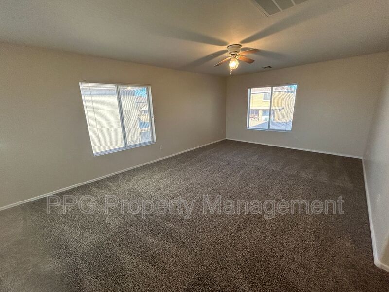Welcome to your new home in Sundance! This large 4 bedroom / 3 bathroom home is perfect for those seeking spacious living. The house feels fresh and inviting. The bedrooms are generously sized, providing ample space for relaxation and personalization. Additionally, the extra large loft offers endless possibilities for a home office, play area, or entertainment space. Stay cool and comfortable year-round with upgraded air conditioners and ceiling fans throughout the house. The kitchen features beautiful oak cabinets, providing plenty of storage for all your culinary needs. Step outside onto the covered patio and enjoy the Arizona weather while sipping your morning coffee or hosting a barbecue with friends and family. Conveniently located within walking distance to a park, you can easily enjoy outdoor activities and recreation. Don't miss out on this fantastic opportunity to make this house your home.