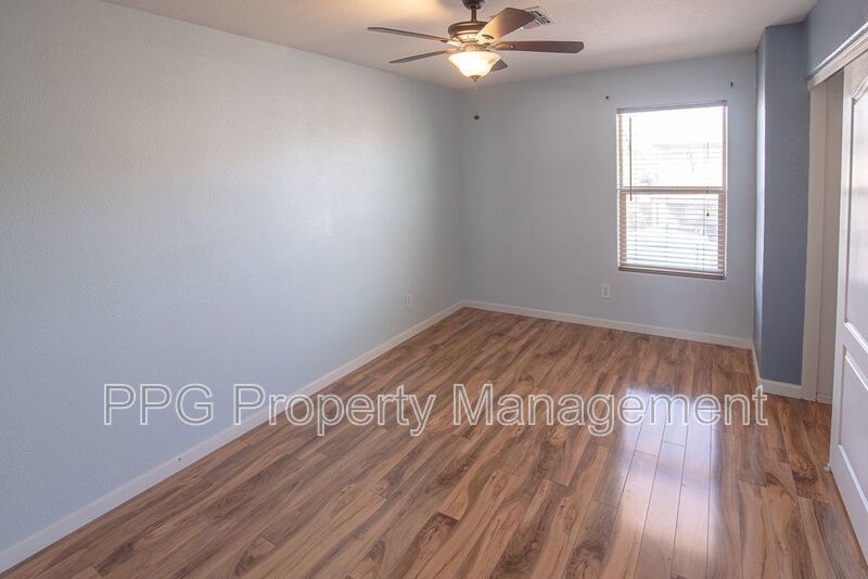 The primary bedroom is a true retreat with a spacious walk-in shower, dual sinks, a soaking tub, a private toilet room, and a large walk-in closet. Guests will appreciate the convenience of a full bathroom with its own walk-in shower. Outdoor living is equally enjoyable with a covered patio and desirable north/south exposure, while the location directly across the street from the park makes this home even more appealing. This property combines modern finishes with a prime location, making it an ideal rental opportunity.