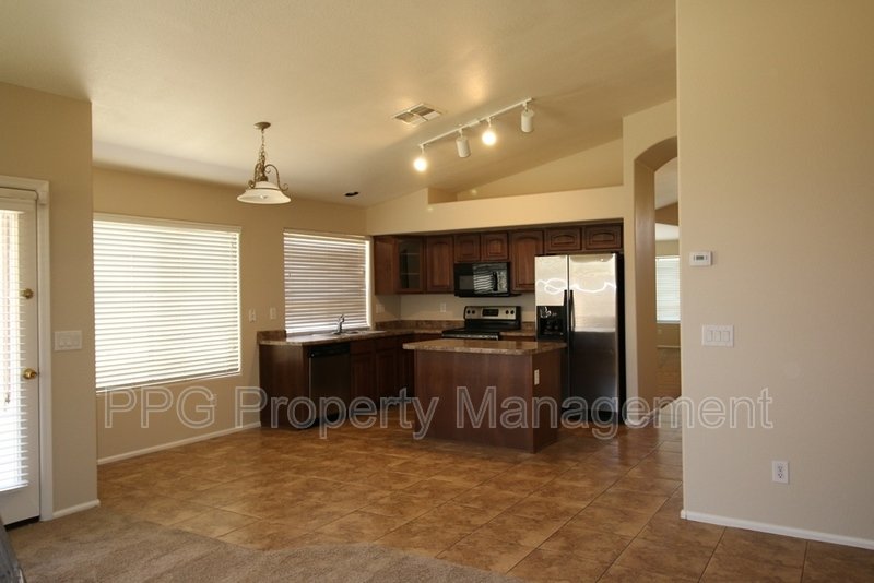Spacious 3 bedroom 2 bath home in Litchfield Park Home features formal dining and living room plus a family room. It has a bay window off the living room and a seperate entrance to backyard from the master bath. It also features vaulted ceilings, a kitchen island, stainless steel appliances, upgraded kitchen cabinets, a walk in pantry, brand new carpet and paint, separate tub and shower plus double sinks in the master bath, and a covered patio. Property is close to shopping, schools, parks, restaurants, and highway access.