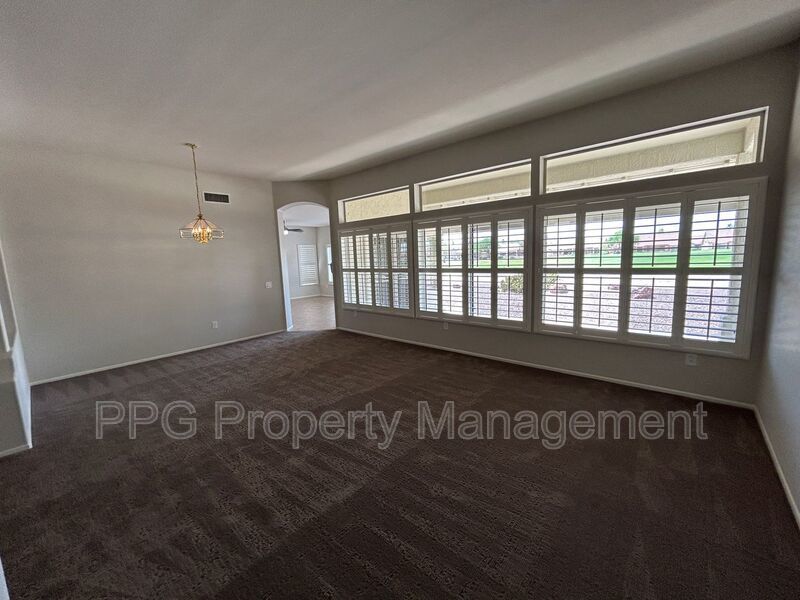Welcome to this beautiful golf course home located in the age restricted community of Sun City West. This stunning property features a prime location on the 11th green offering panoramic views of the course. The house boasts a split floorplan with two large bedrooms and a den/office, providing ample space for relaxation and productivity. The kitchen is equipped with upgraded corian countertops and stainless steel appliances, perfect for cooking and entertaining. The home has been freshly painted both inside and out, with new ceiling fans in every room for added comfort. Enjoy the convenience of a walk-in shower in the primary bathroom, as well as built-in cabinets and a sink in the laundry room. Plantation shutters adorn the windows throughout, adding a touch of elegance to the space. With north/south exposure and a 2.5 car garage designed for two large cars and a golf cart, this property is a must-see for anyone looking for a luxurious golf course living experience.